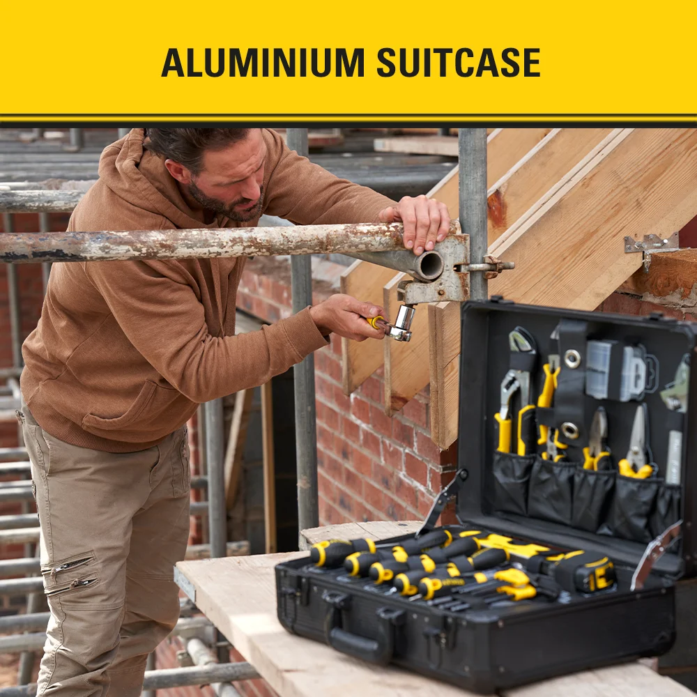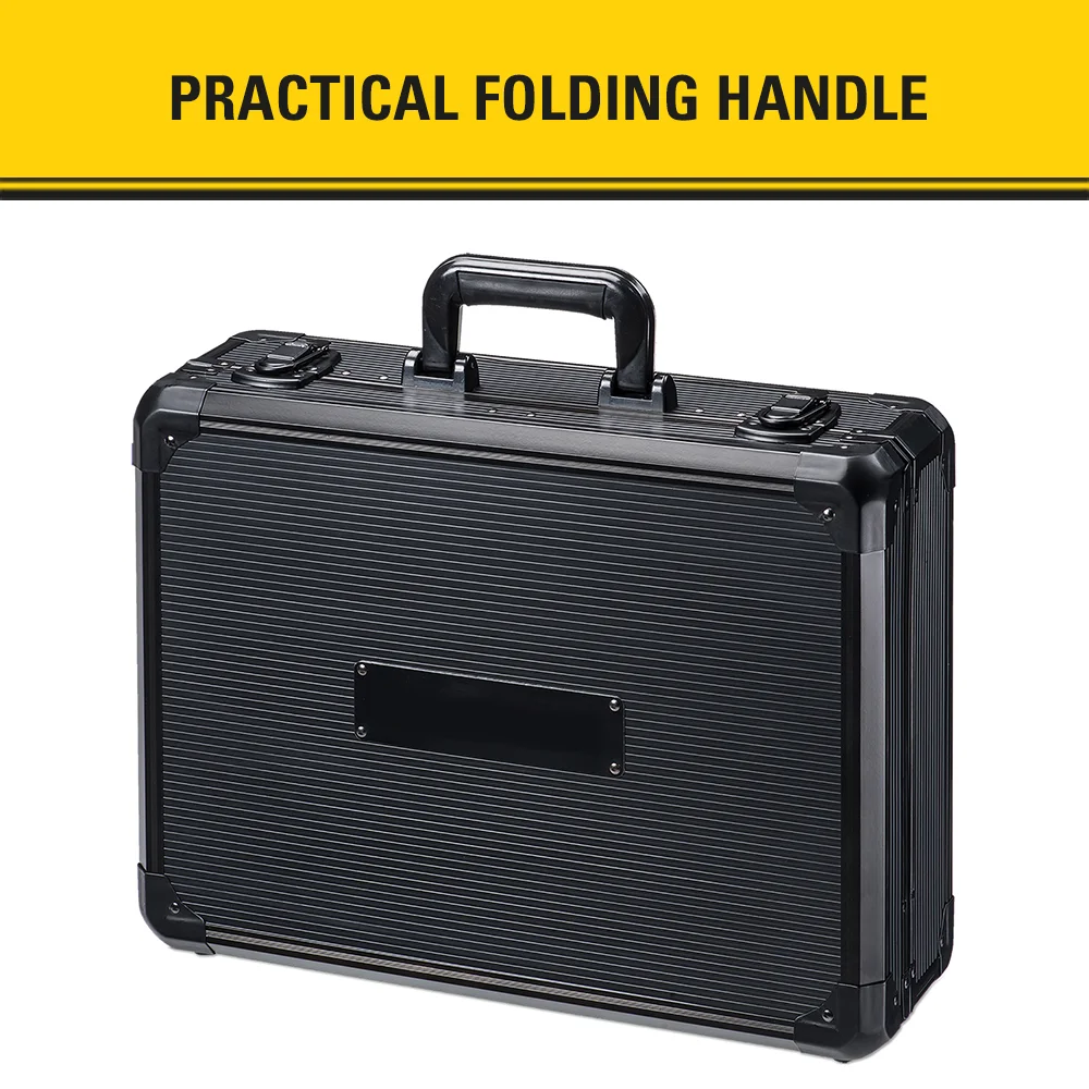 The practical folding handle makes it easy to transport tools from one job site to another.